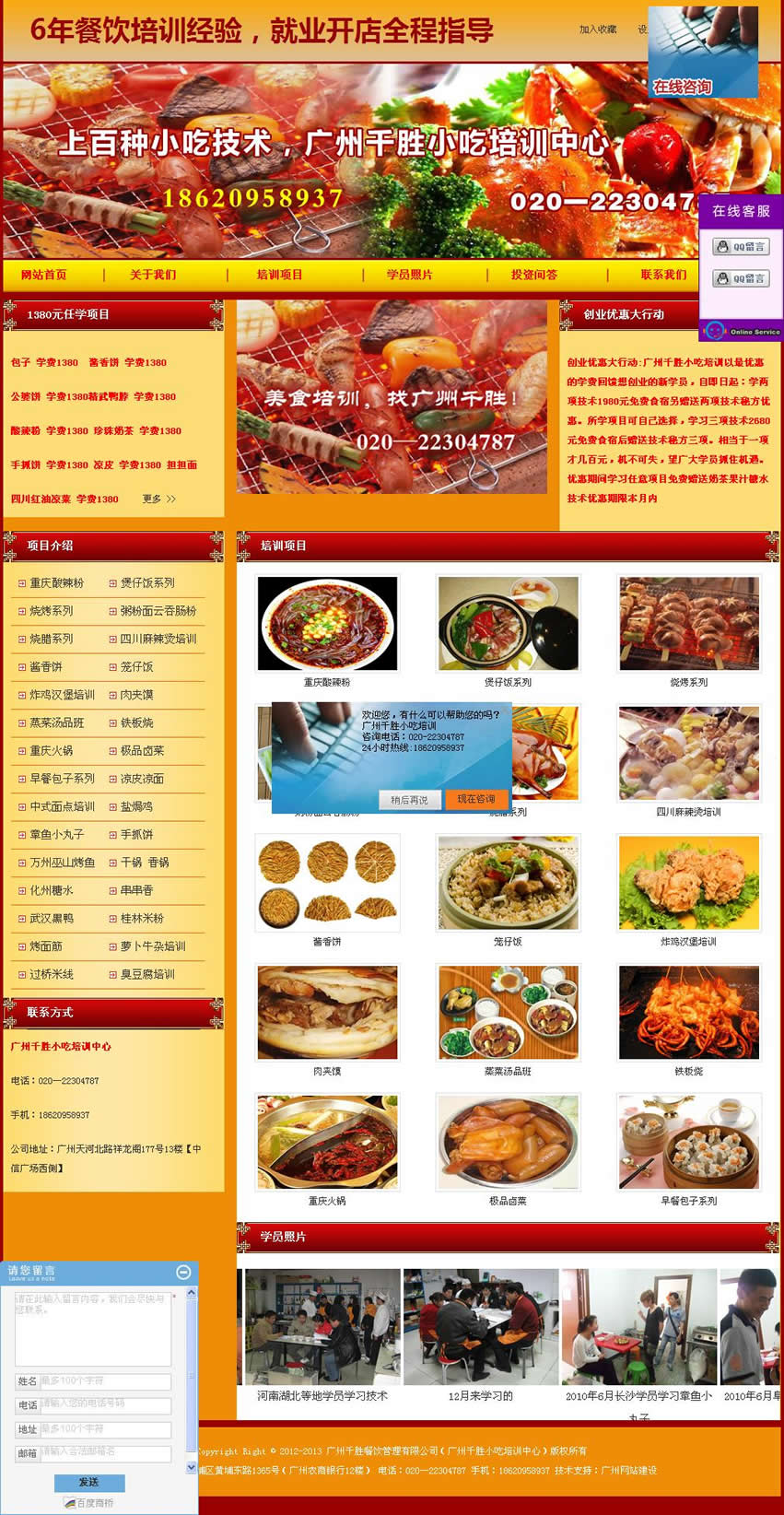 廣州千勝小吃培訓(xùn)中心座落在風(fēng)景秀麗的廣州天河區(qū)。專(zhuān)業(yè)從事飲品、特色小吃、地方小吃、私房菜、地方特色飲食的培訓(xùn)研究機(jī)構(gòu),擁有多名專(zhuān)業(yè)培訓(xùn)老師,都擁有精湛的技術(shù)和豐富的開(kāi)店經(jīng)驗(yàn)。中華美食源遠(yuǎn)流長(zhǎng),博大精深。五千年傳統(tǒng)文化成就了多種不同的美食文化,廣州千勝小吃培訓(xùn)中心作為餐飲行業(yè)里的嬌嬌者,為傳承中華美食文化,匯集國(guó)內(nèi)外餐飲食品行業(yè)研發(fā),教育培訓(xùn),運(yùn)營(yíng)管理,餐飲策劃,特色小吃培訓(xùn)等各方面的專(zhuān)家學(xué)者。從事美食文化的傳播與推廣工作,以倡導(dǎo)美食新概念和標(biāo)準(zhǔn)化。把“傳統(tǒng)與時(shí)尚,美味與健康”完美結(jié)合,把美食制作推向簡(jiǎn)易和標(biāo)準(zhǔn)化的新高度,讓每一個(gè)人都會(huì)做美食,使客戶(hù)達(dá)到零風(fēng)險(xiǎn)創(chuàng)業(yè),創(chuàng)造高回報(bào)的價(jià)值,真正達(dá)到相互共贏(yíng)。